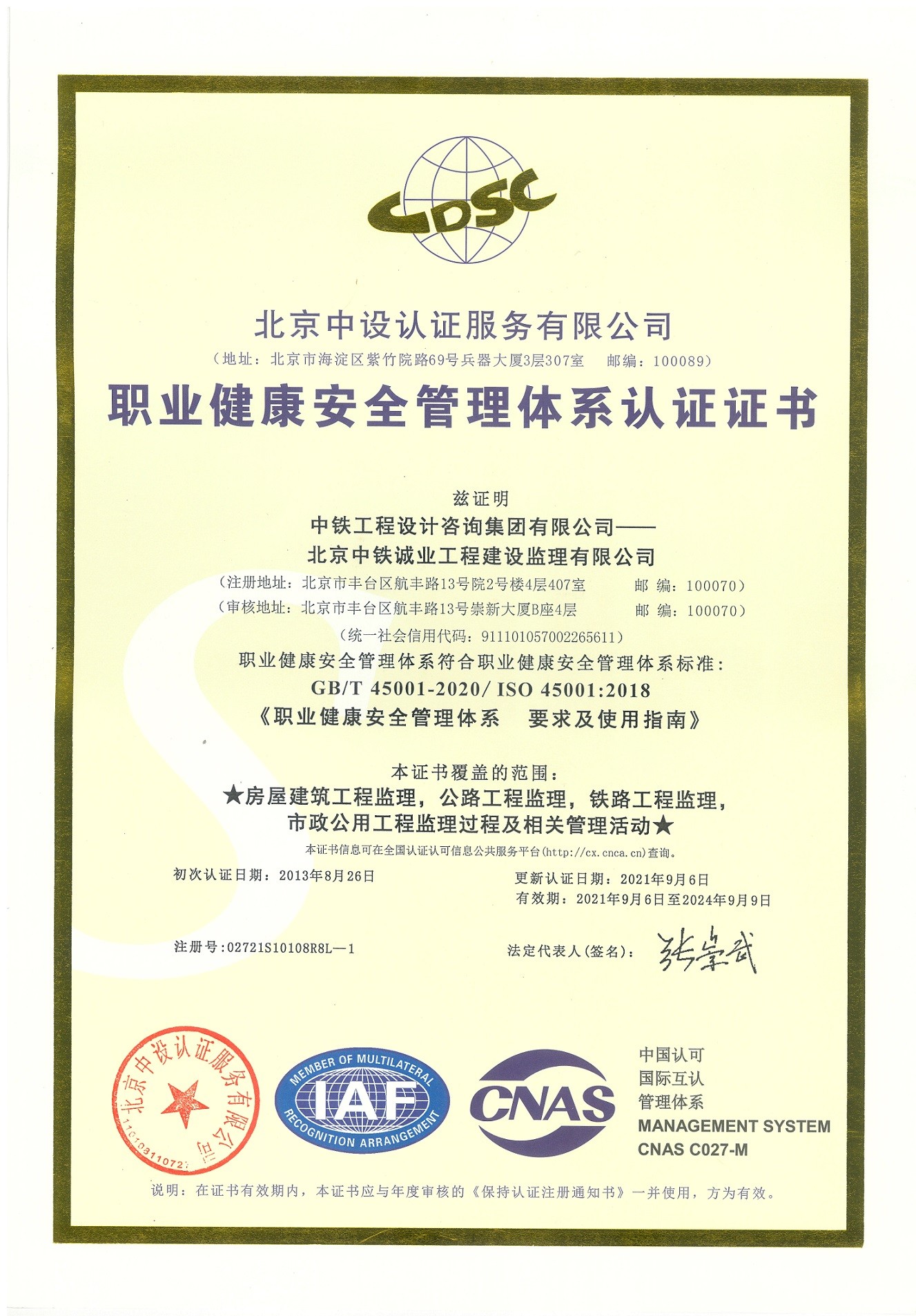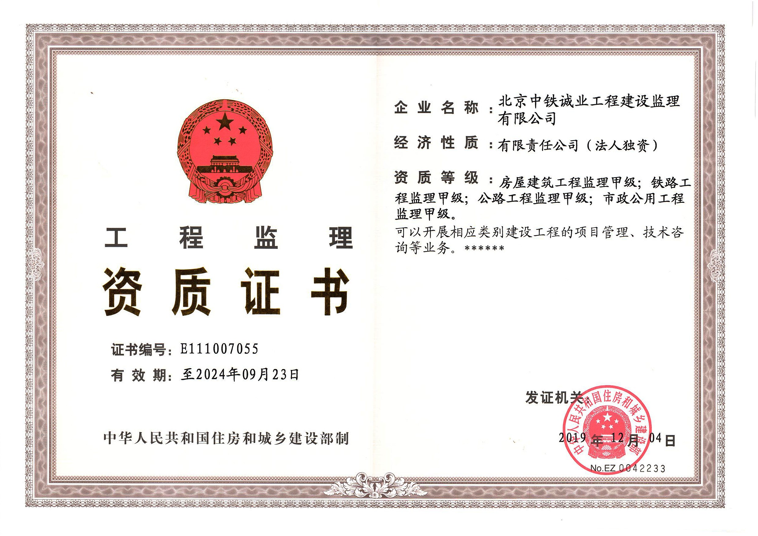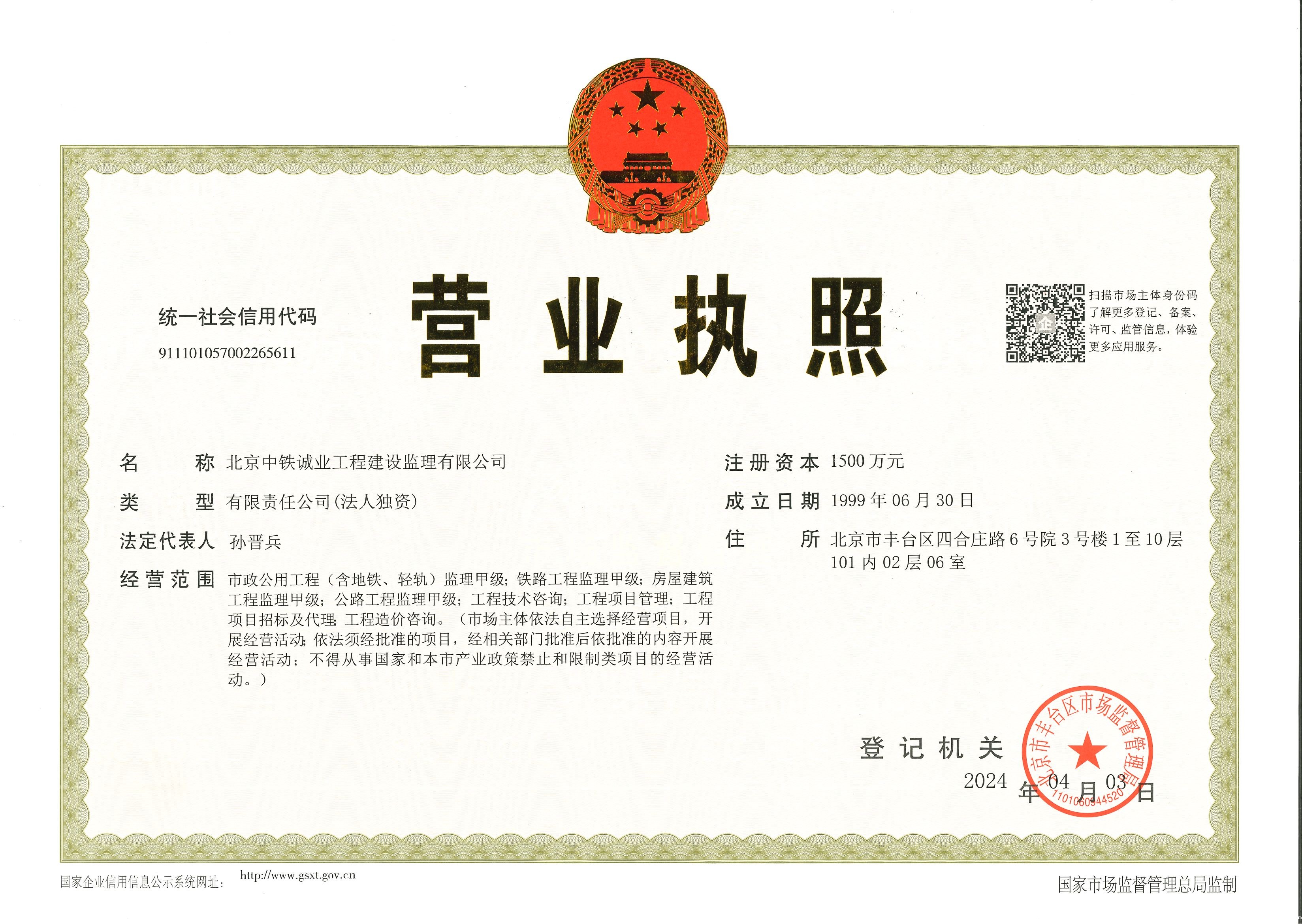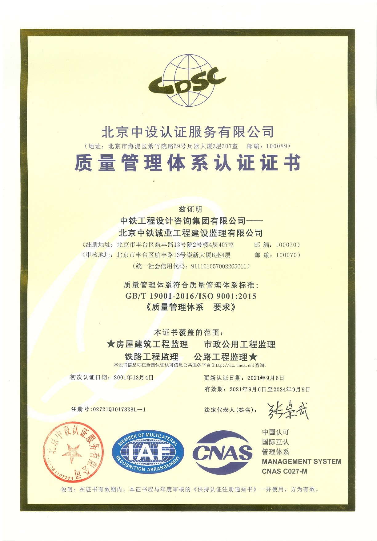 北京中铁诚业工程建设监理有限公司是必威betway西汉姆联网站股份有限公司所属betway比赛篮球(原铁道部专业设计院)的全资子公司,始建于1988年,1999年正式成立法人实体并注册为现名。公司现有各类从业人员1720余人,其中专业技术人员1370余人,持有国家注册监理工程师、造价工程师、一级建造师、安全工程师等各类证书520余人项。 公司连续十年进入全国监理企业营业收入五十强,具有铁路工程、市政公用工程、公路工程、房屋建筑工程监理甲级资质和机电安装工程监理乙级资质。公司通过GB/T19001-2016-ISO 9001:2015质量管理体系和GB/T24001-2016-IS0 14001:2015环境管理体系以及GB/T45001-2020/IS0 45001:2018职业健康安全管理体系认证。2020年,公司被认定为国家级高新技术企业。获得北京建设行业诚信监理企业和北京市市政行业诚信企业。