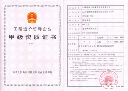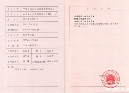 公司下设安全质量部、计划经营部、综合管理部、人力资源部及咨询部事业部、房建事业部等部门。公司在岗员工876人,平均年龄39岁,其中具有高级技术职称的189人。公司有国家注册工程师96人,其中国家注册监理工程师59人,国家注册造价工程师、国家注册建造师、国家注册安全工程师、国家注册设备工程师37人;持有省部级注册工程师证书人员416人;持有铁道部、山东省监理员岗位证书人员102人;持有试验工程师证书人员34人;持有试验员证书人员21人。公司监理队伍结构合理,专业配套,技术过硬,同时还配备的完善的工程试验、测量仪器和现代化办公设备,为现场监理工作提供了有力的支持。
