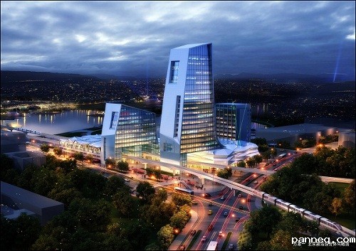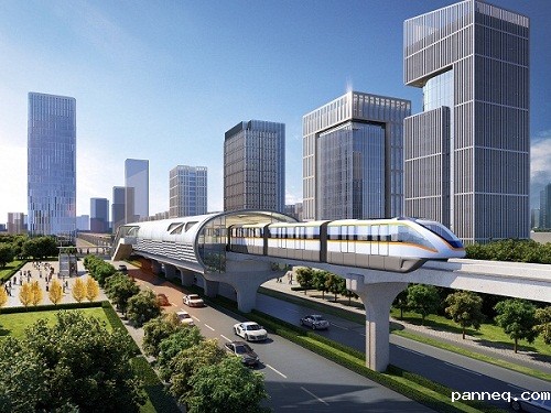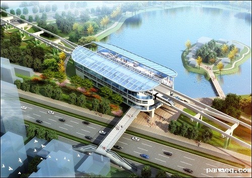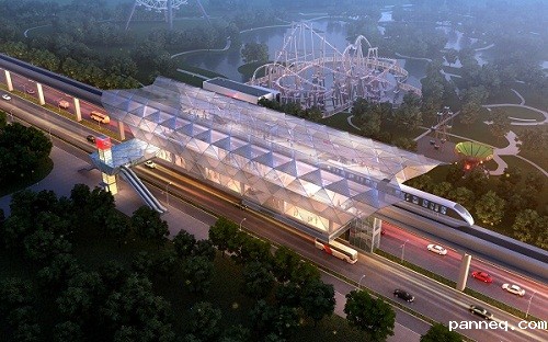 平行换乘、综合体一体开发的轻型跨座式单轨交通效果图