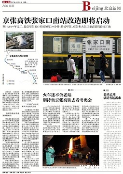 2017年11月12日零时,老张家口南站停止办理业务,由必威betway登录集团承担设计任务的京张高铁终点站张家口南站即将开始建设,预计2019年完工。届时,北京至张家口将从3小时12分缩短至50分钟。这则消息引来北京卫视、河北卫视、新京报、北京新闻广播等各级媒体竞相报道。必威betway登录集团党委宣传部和建筑院参加了现场的采访活动,建筑院冯越接受了部分媒体的采访。
