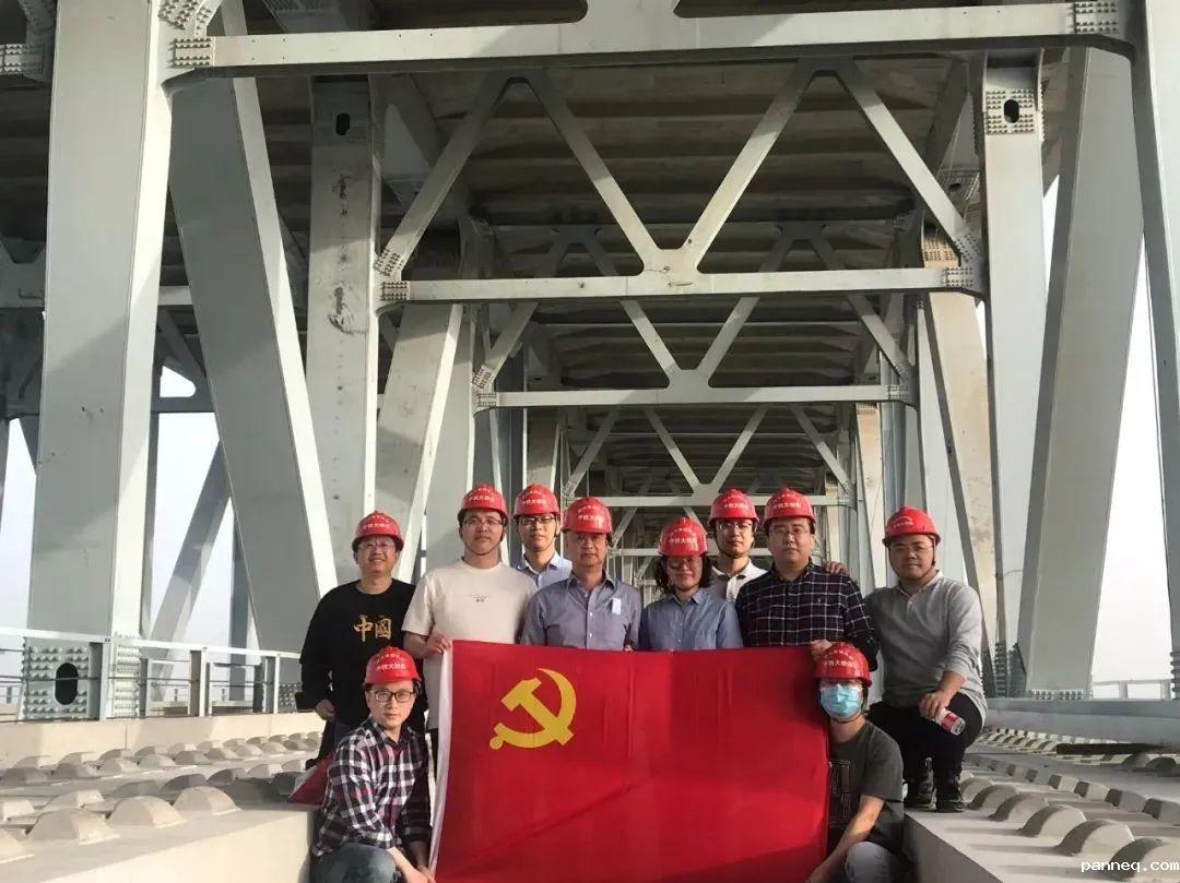 新建郑济铁路黄河特大桥是我国首次在高速铁路大跨度钢桁梁桥上铺设无砟轨道的工程。轨道院党支部现场与施工单位就黄河特大桥无砟轨道施工组织、无砟轨道铺设方案等进行了深入交流,对现场无砟轨道铺设存在的问题进行了总结分析。在项目负责人的讲解下,近年来入职的年轻同事也对钢桥上无砟轨道设计理论有了更深的理解。