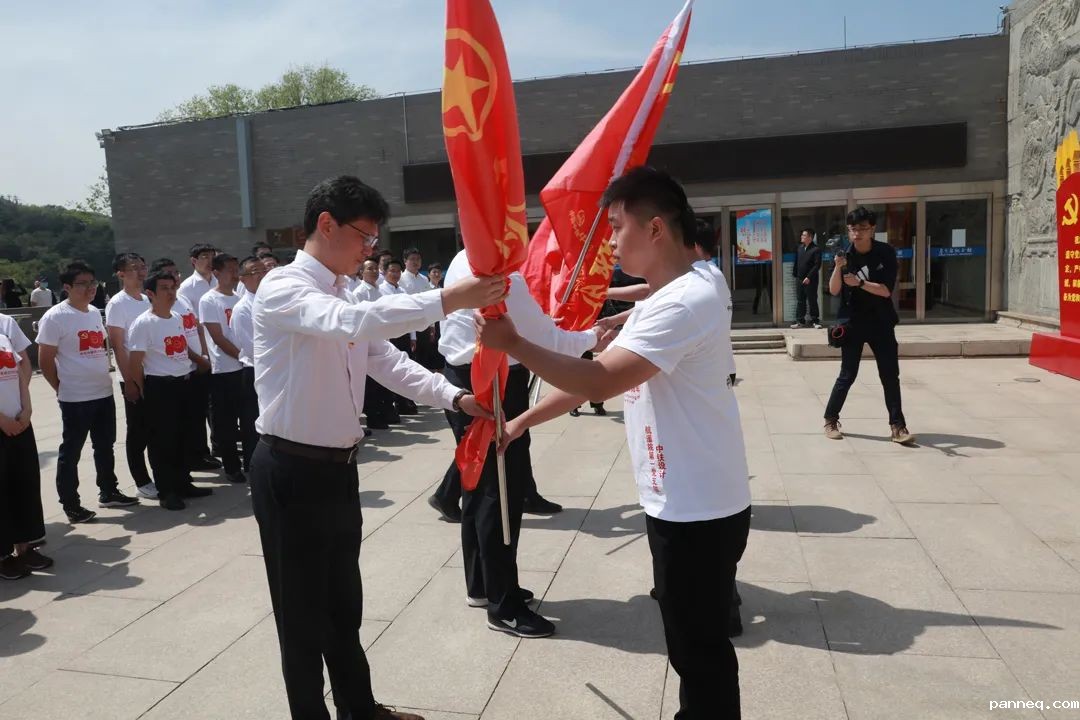 在詹天佑纪念馆前,全体党员干部凝视詹天佑雕像,重温了入党誓词。我院王磊同志代表航遥院接过了平漯周新建铁路项目的“青年突击队”旗帜,这面旗帜,代表的是光荣、责任与使命,需要全体航遥人团结一心、众志成城,发扬孺子牛、拓荒牛以及老黄牛的“三牛”精神,不用扬鞭自奋蹄。