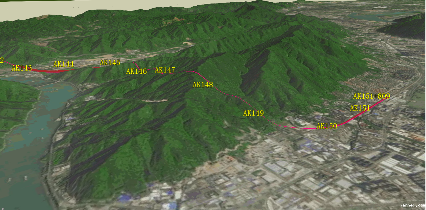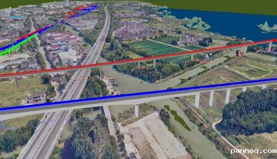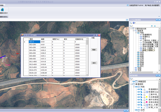系统可根据线路平纵断面设计文件,快速创建线路三维方案线,并结合导入的线路控制数据实现多个线路方案的比较分析,从而达到线路方案优化、决策的目的。