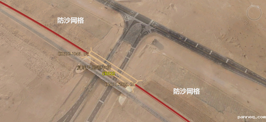 6、在临哈铁路项目中,地质专业通过平台影像快速识别既有铁路设备,通过线路左右侧防沙网格设置宽度,研判线路左右侧沙害严重程度,此外还可以探查防沙设备破损情况,为后期设计补强提供依据。