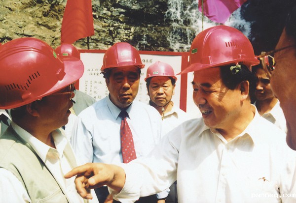 原铁道部部长傅志寰视察内昆铁路时同公司监理人员亲切交谈