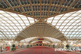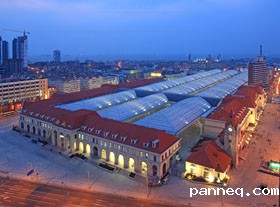 青岛火车站地处山东半岛,胶州湾畔,是胶济铁路的起点,设计最高聚集人数5000人,为大型旅客车站。站房地下二层,地上三层,建筑高度22.14m总建筑面积54277㎡;站场规模为10台面10线,其无站台柱风雨棚覆盖面积58300㎡,高架景观连廊建筑面积2743㎡,地下通道建筑面积4820㎡。