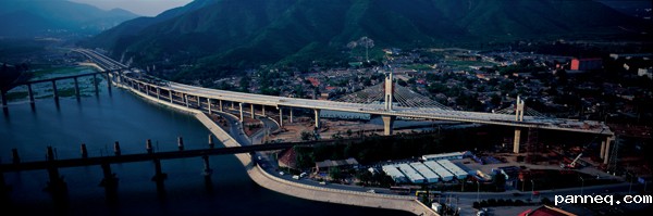 丰沙铁路转体斜拉桥位于北京市门头沟区三家店村,是西六环项目建设中科技含量最高、施工工艺最为复杂、工期最为紧张的控制性工程, 主桥设计为56 +100 +70 +37米四跨连续双圆柱子母塔单索面W形腹板截面预应力混凝土曲线斜拉桥,桥梁全宽30.5米。结合本桥桥墩较高、体量较大的实际情况,因地制宜地采用了墩顶大吨位单铰转体施工工艺,主要技术指标为:墩高21.5米,转体总长182米,平曲线半径950米,单铰转体重量15000吨,转体角度40度,是我国第一座采用墩顶转体施工的桥梁,是世界上墩顶单铰转体吨位最大的桥梁。