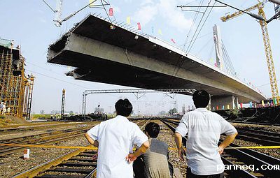 北京市五环路石景山南站特大桥主桥跨越石景山南站编组站咽喉区,铁路线间距小、行车密度大,为了既能快速、安全地在电气化铁路站场上加起高架桥,又可不干扰或尽量少干扰正常的铁路运输。该桥主桥采用了转体法施工的45+65+95+40m四跨连续独塔单索面预应力混凝土曲线先拉齐奥,转体重量达14000吨。该桥或2005年度国家优质工程银质奖,2006年度建设部优秀设计一等奖,全国优秀工程设计金质奖。